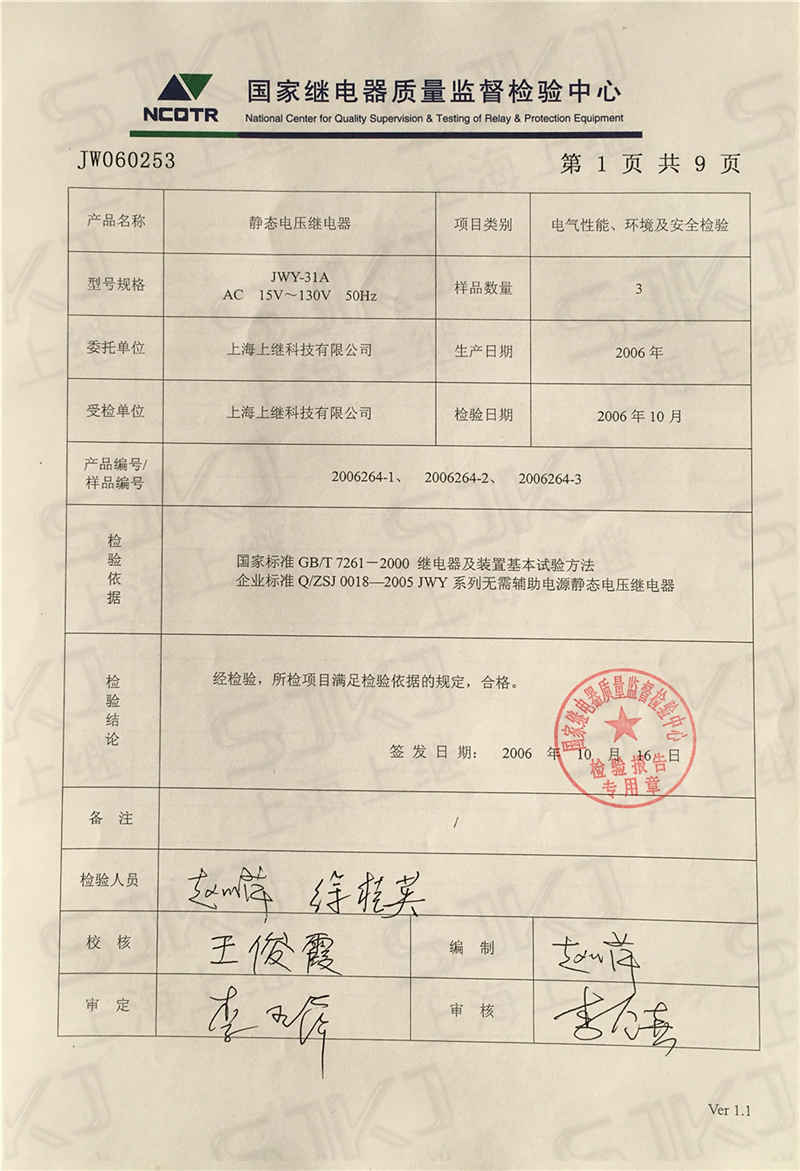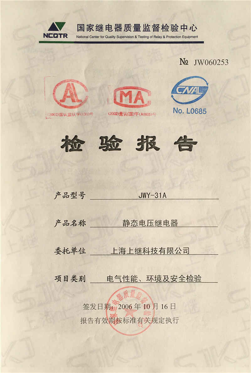 > JWY-31A檢驗(yàn)報(bào)告