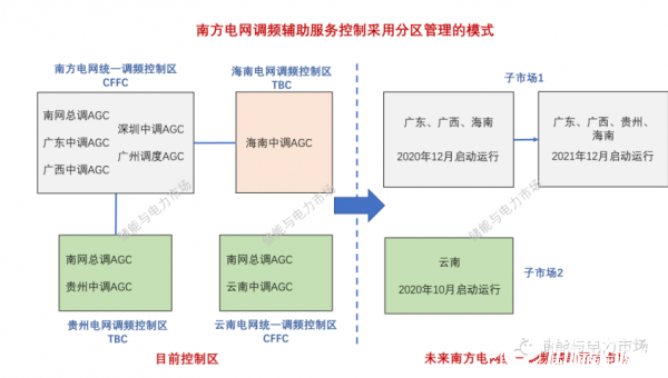 7月,國家能源局南方監(jiān)管局印發(fā)了《南方區(qū)域統(tǒng)一調(diào)頻輔助服務(wù)市場建設(shè)方案(征求意見稿)》(南方監(jiān)能市場函〔2020〕86號),南方區(qū)域統(tǒng)一調(diào)頻輔助服務(wù)市場將最終形成兩個區(qū)域調(diào)頻子市場: