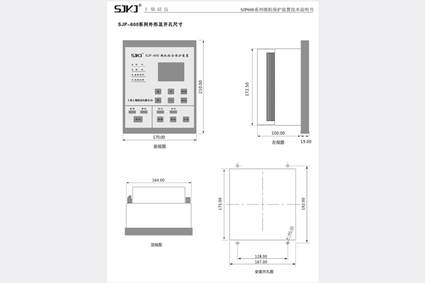 四、SJP-600B微機(jī)綜合保護(hù)裝置外形及尺寸