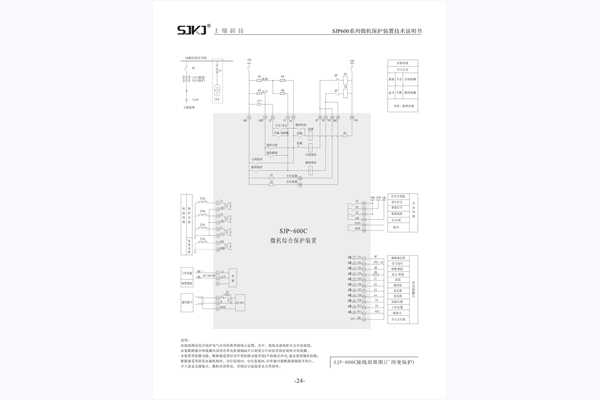 三、SJP-600C微機(jī)綜合保護(hù)裝置接線(xiàn)原理圖