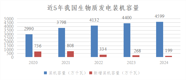 截至2024年末,我國生物質(zhì)發(fā)電裝機容量達(dá)到4599萬千瓦,其中2024年新增裝機185萬千瓦,同比增長4%,連續(xù)6年位居世界第一。全年生物質(zhì)累計發(fā)電量2083億千瓦時,同比增長5%。雖然我國生物質(zhì)發(fā)電與其他幾類電力相比微不足道,但基于生物質(zhì)的新生態(tài)能源系統(tǒng)正在建成,已初步形成了以發(fā)電為主,生物天然氣、清潔供暖等非燃料能源電能為輔的多元化發(fā)展格局。據(jù)權(quán)威機構(gòu)研究數(shù)據(jù)顯示,我國生物質(zhì)能開發(fā)潛力約4.6億噸標(biāo)煤,目前實際轉(zhuǎn)化為能源的還不足0.6億噸標(biāo)煤,發(fā)展?jié)摿^大。