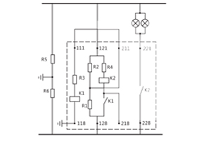 R1、 R2 (R1=R2)為橋臂平衡電阻,R5、R6為直流母線對地絕緣電阻,靈敏元件K1跨接在地和平衡電阻之間。正常工作時,電橋平衡,靈敏元件上無電流通過。在一側絕緣電阻下降時,便有一不平衡電流通過靈敏元件,當不平衡電流達到一定值時便側絕緣電阻下降時,便有一不平衡電流通過靈敏元件,當不平衡電流達到一定值時便動作,再由繼電器出口觸點接通報警信號發信號如圖所示。