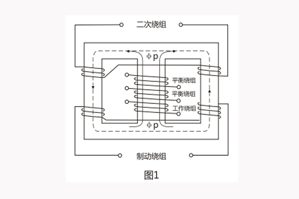 變流器的導(dǎo)磁體是一個(gè)三柱形鐵芯,用幾組“山”形導(dǎo)磁片疊裝而成,在導(dǎo)磁體的中柱上放置工作繞組和平衡繞組制動(dòng)繞組和次級(jí)繞組則均分成兩部分,分別放在導(dǎo)磁體的兩個(gè)邊柱上,其連接方法應(yīng)使得制動(dòng)繞組與二次繞組及平衡繞組I、Ⅱ之間亦無相互感應(yīng),二次繞組里的感應(yīng)電勢(shì)是由工作繞組的磁化產(chǎn)生的,為了能改變變流器導(dǎo)磁體被飽和的程度,制動(dòng)繞組的匝數(shù)做成是可以改變的。