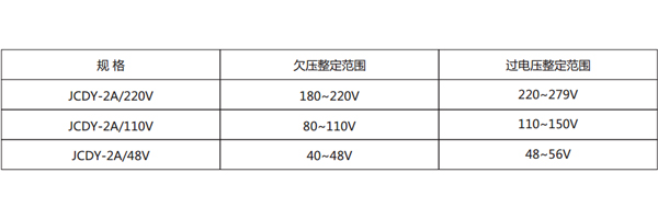 四、JCDY-2A電壓繼電器的技術參數