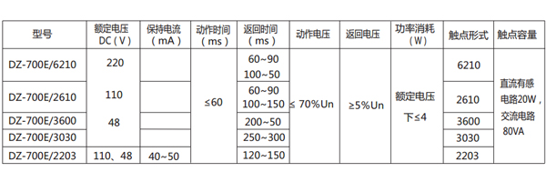 DZ-700E/2203中間繼電器主要技術數據見表